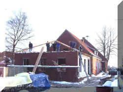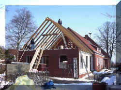 26.2.2005 Das Holz für den Dachstuhl wurde fertiggeschnitten und die Balkenlage gelegt. |