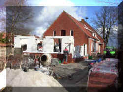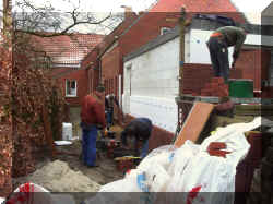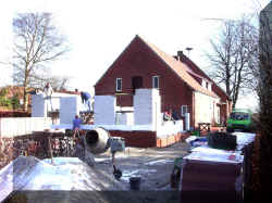 27.02.2005 Die Giebelwand ist auf Deckenhöhe hochgezogen. Alle Arbeiten füs Richtfest erledigt. |