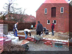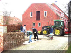 8.1.2005 Vorbereitung. Pflastersteine müssen entfernt werden. Ein Teil der Hecke wurde umgesetzt. |
