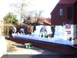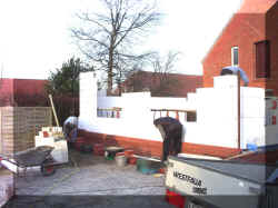 5.2.2005 Die Seitensockel werden verklinkert. Die Innenwände werden angelegt. |