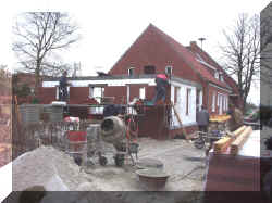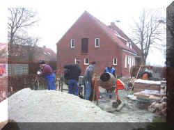 29.1.2005 und nun mit vereinten Kräften: Die Bodenplatte wird betoniert. |