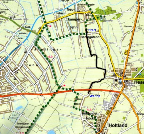 Kartographie: Kommunalverlag Hans Tacken, Essen; Auszug aus dem KVplan Deutsche Fehnroute.